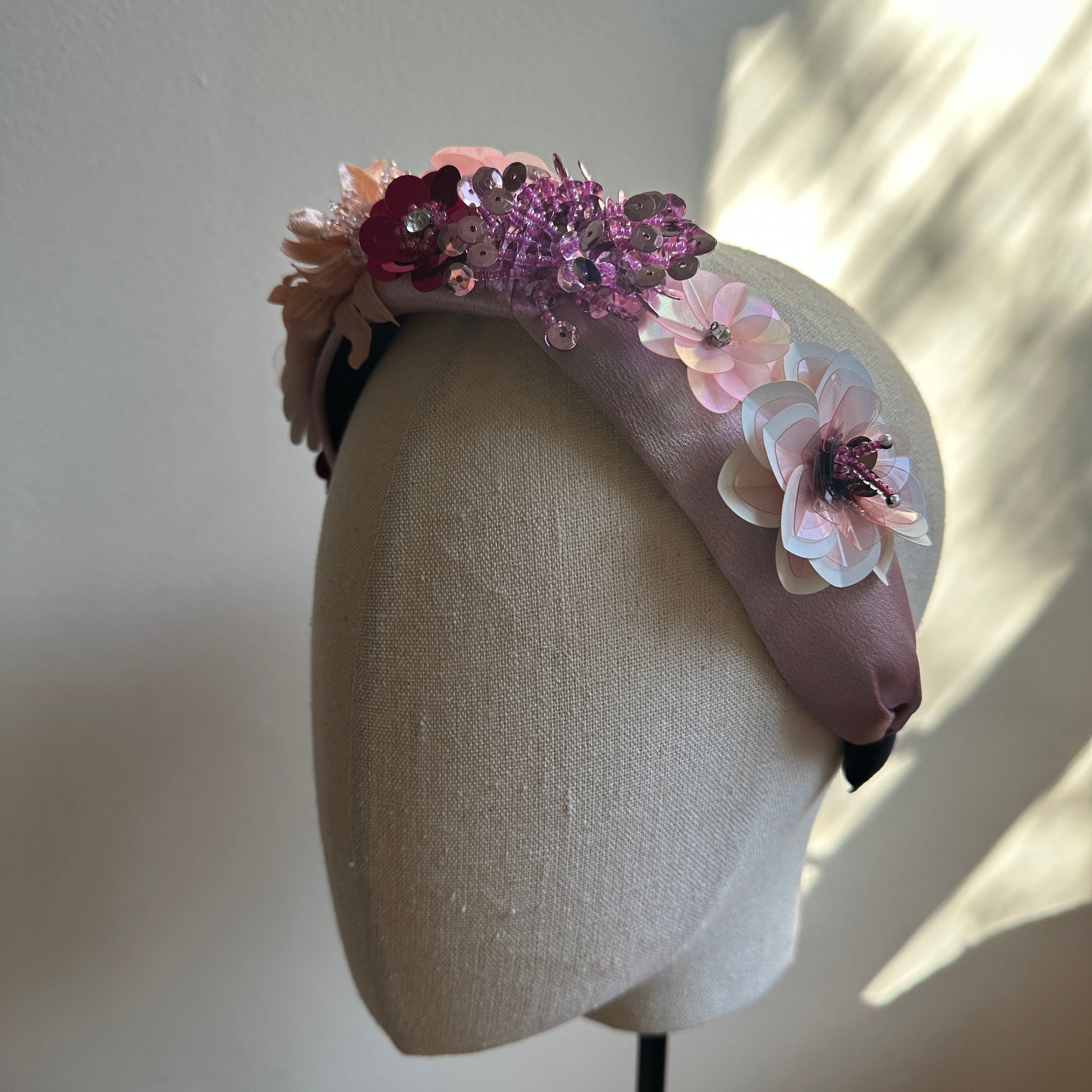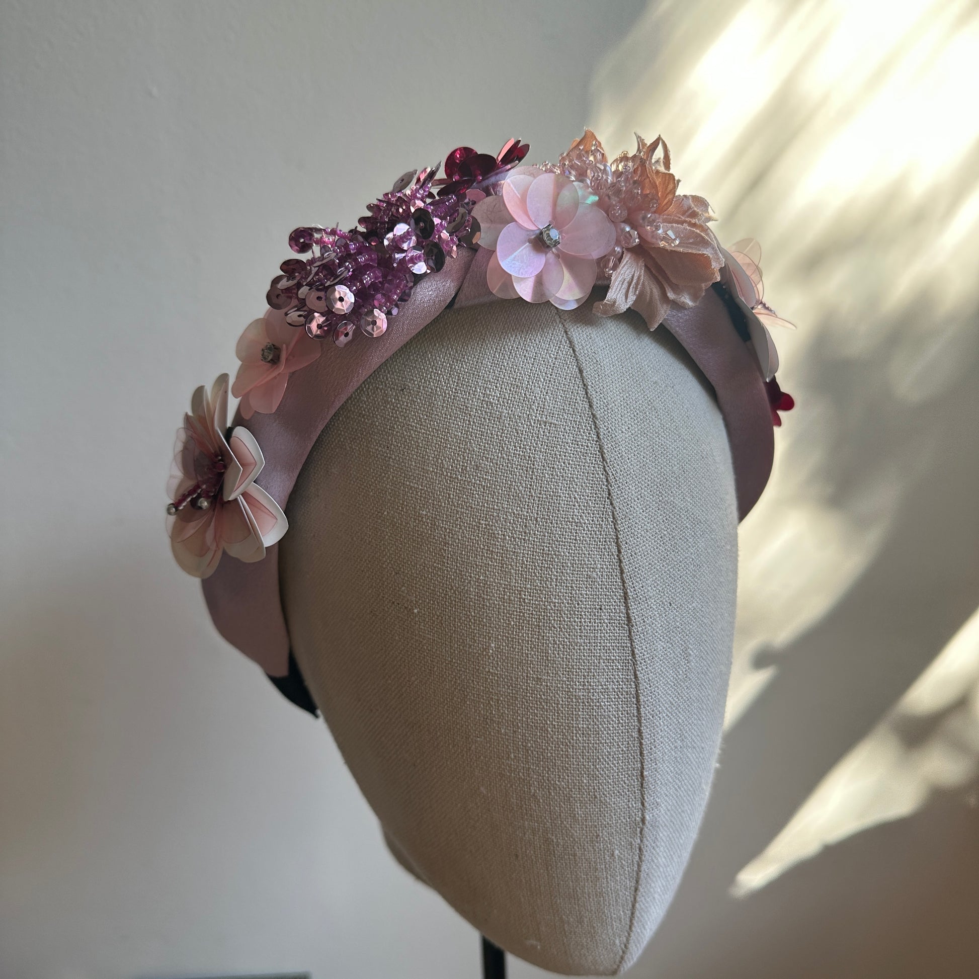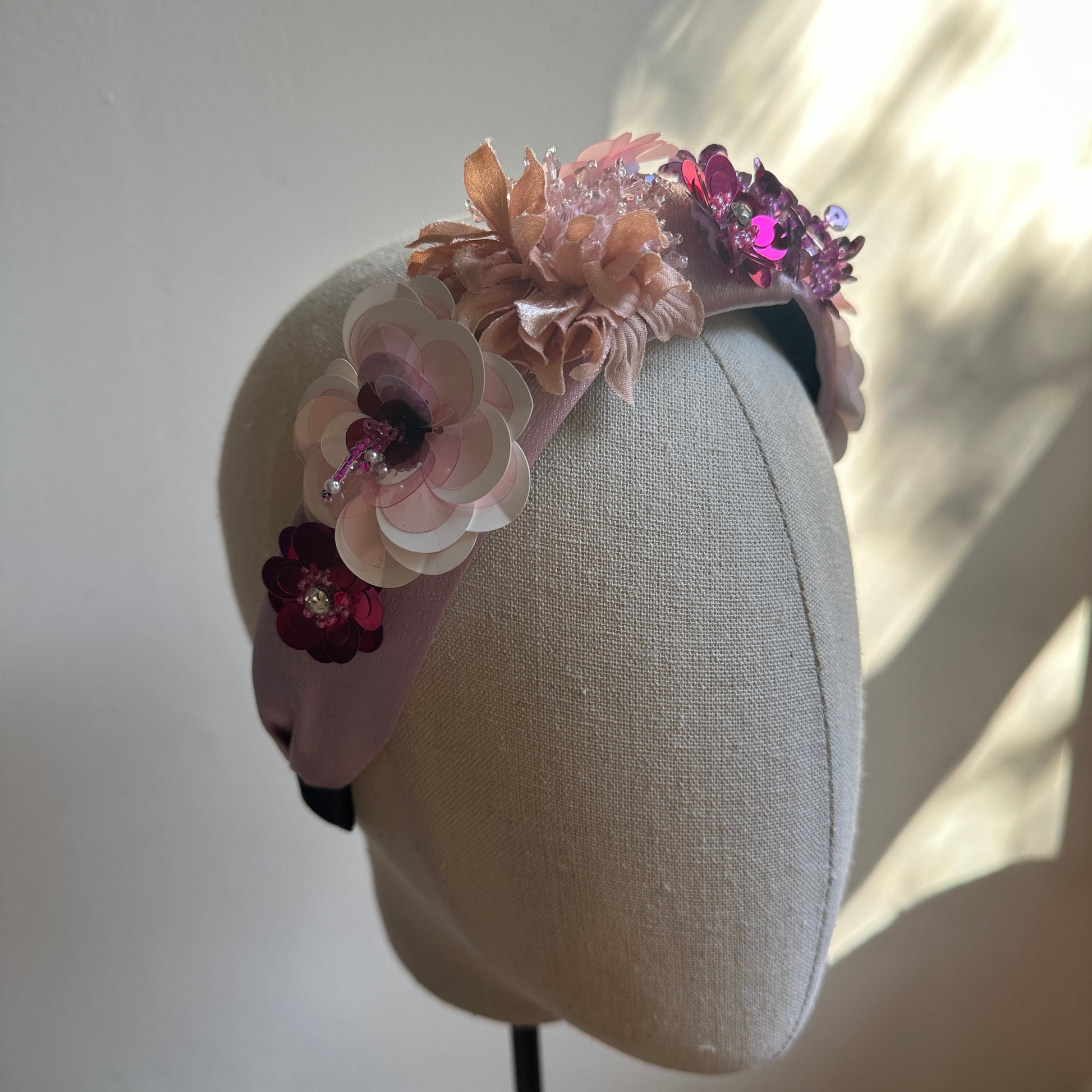 Beautiful pink tonal flowers consisted of sequins, beads and sculpted petals.