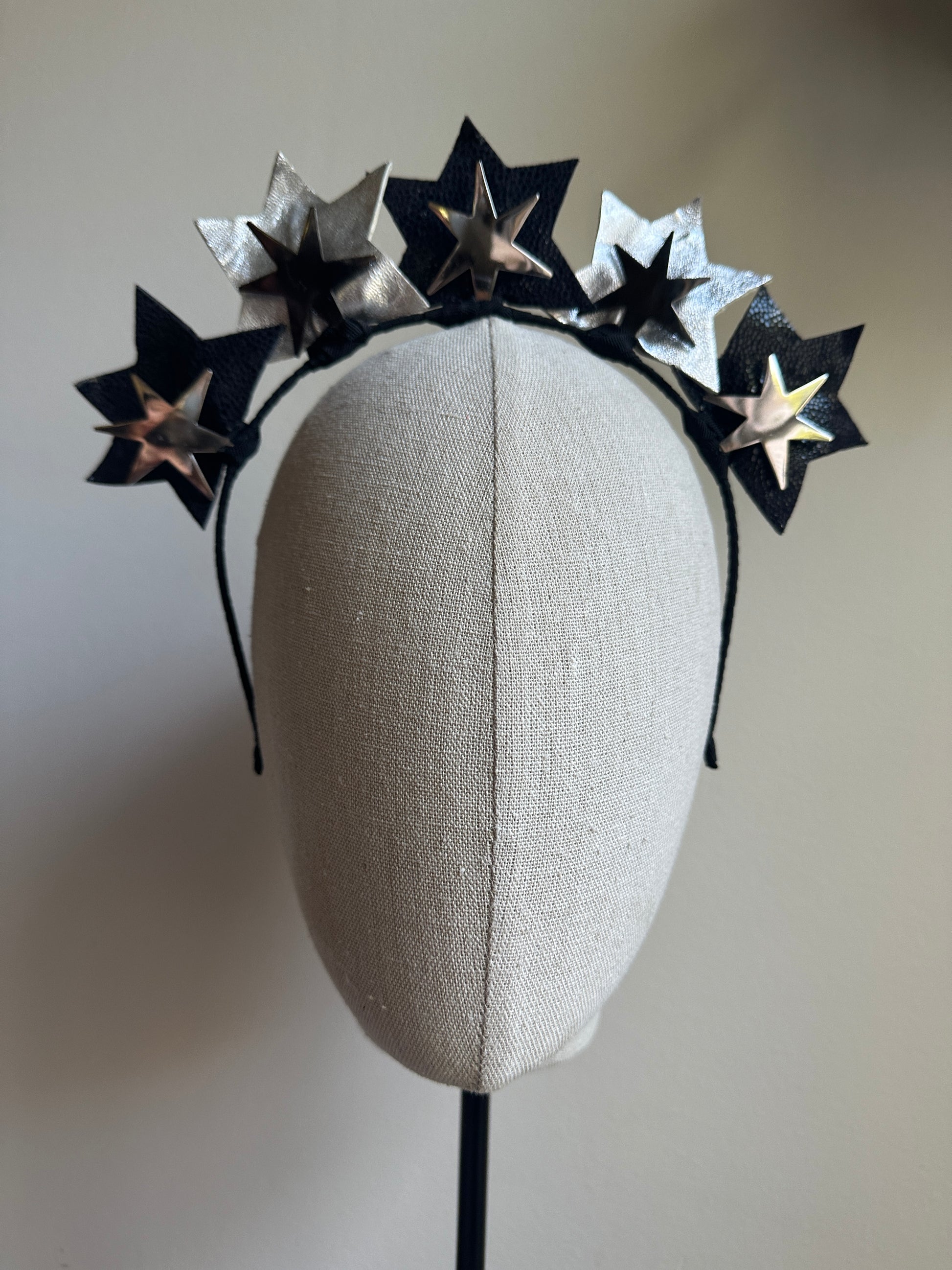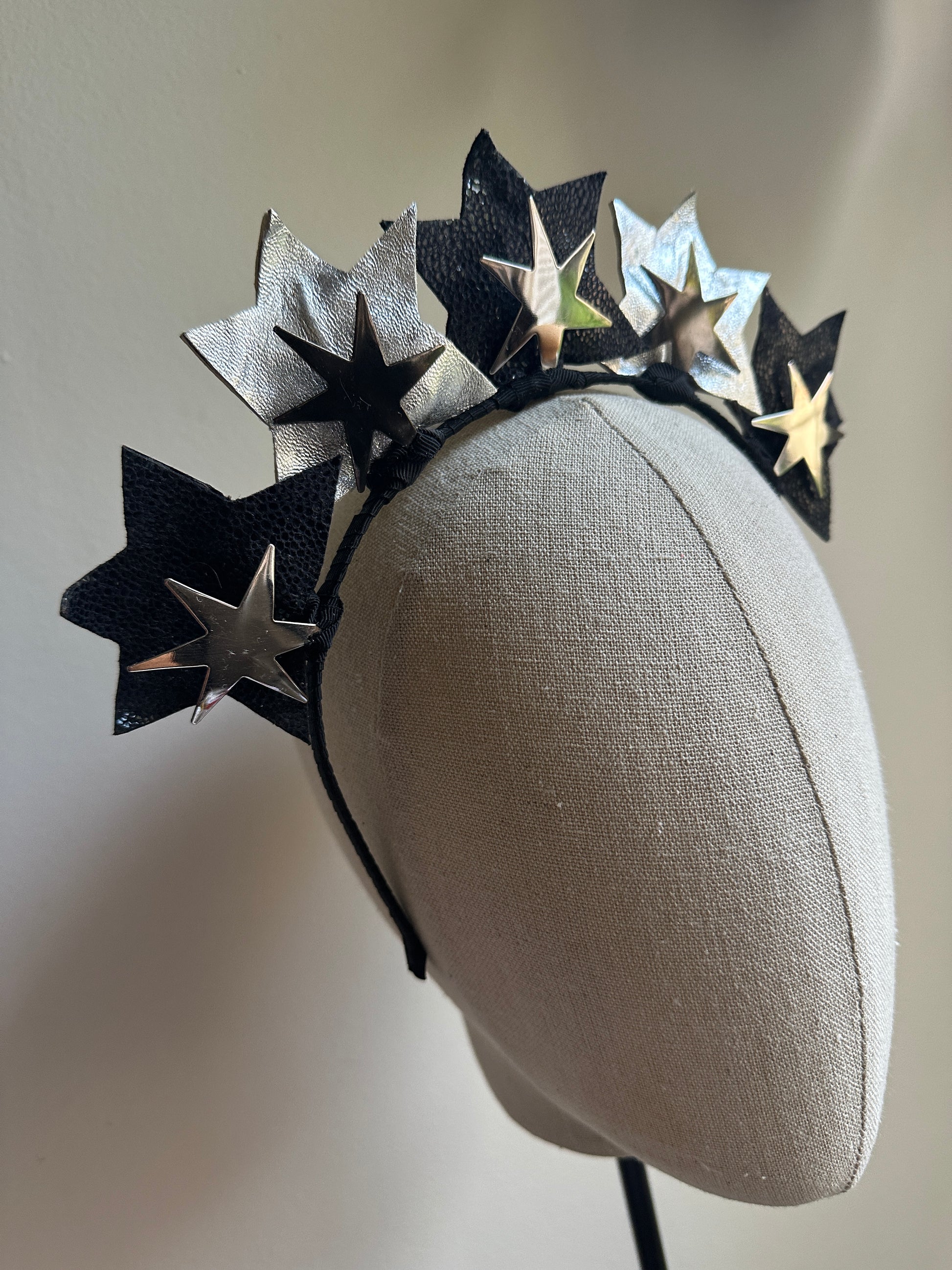 Rhodium & gunmetal plated stars by JY Jewels x Lady of Leisure Millinery, with metallic leather wired dimension layers - handmade in Sydney & Melbourne.