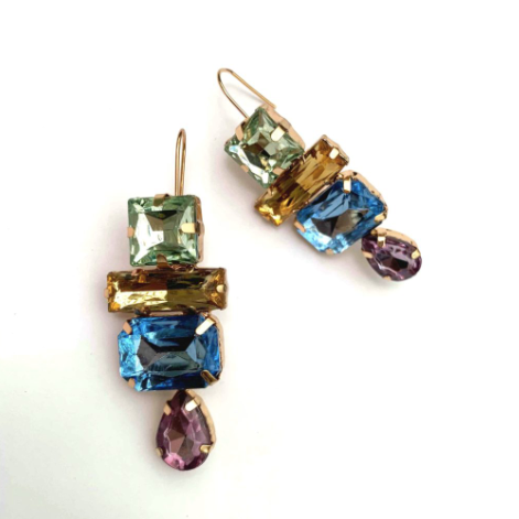 A cluster of acrylic gems soldered together to make the most light weight (12g) drop earrings, yet with a soft sparkle.