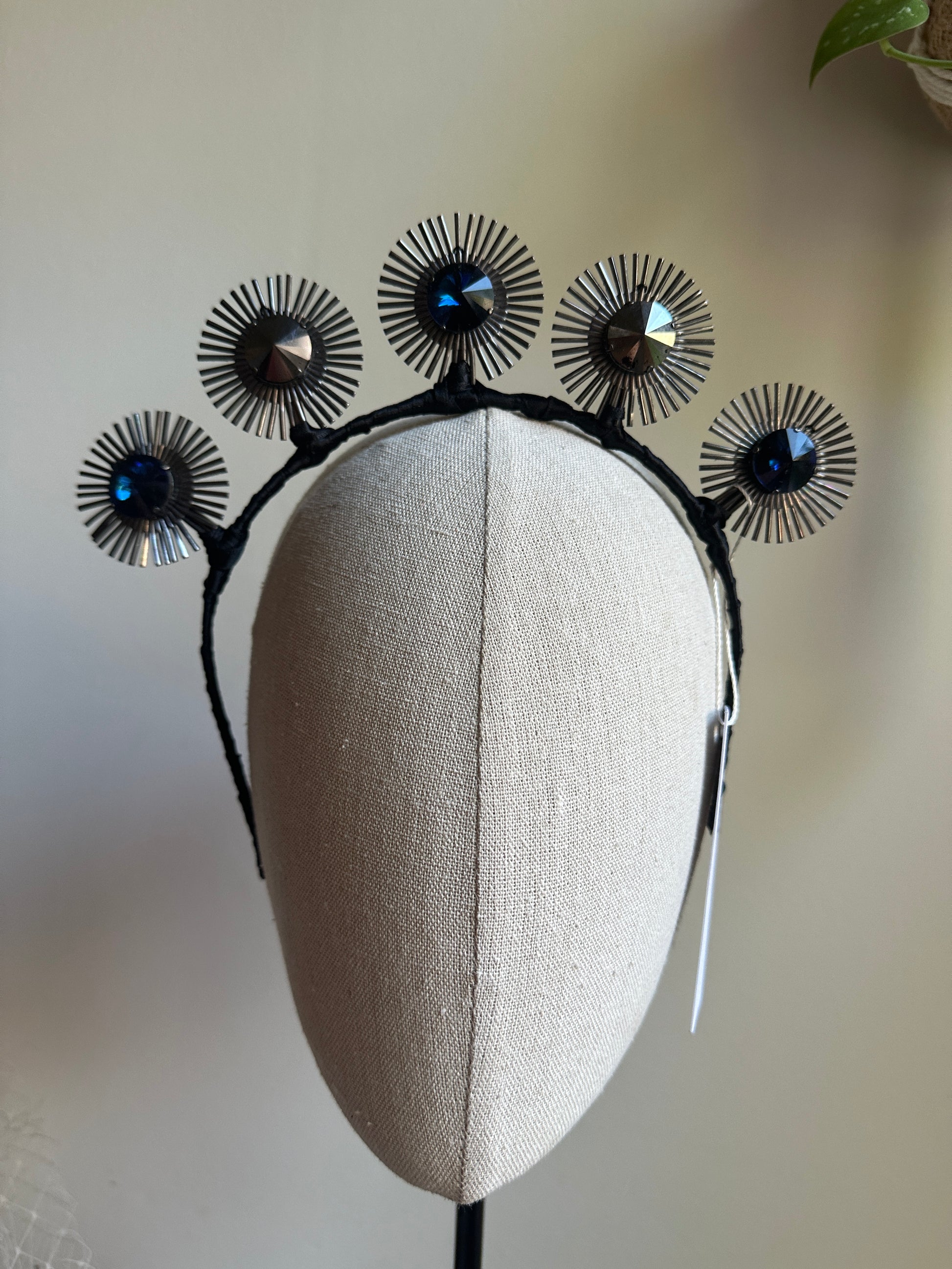 Navy blue & gunmetal smoke Czech crystals by JY Jewels x Lady of Leisure Millinery, wrapped in ribbon - handmade in Sydney & Melbourne.